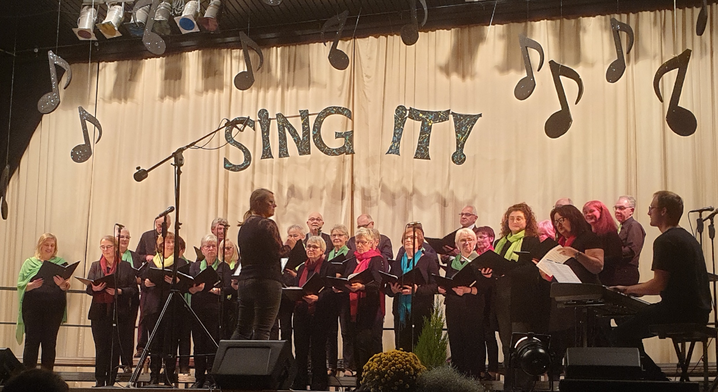 Die Sängerinnen und Sänger unseres Chores nahmen am vergangenen Wochenende am Liederabend der Sängergemeinschaft Mömlingen unter dem Motto "Sing It" teil. Gemeinsam mit insgesamt fünf Chören entstand ein abwechslungsreiches Programm, das die große stilistische Vielfalt der Chormusik eindrucksvoll widerspiegelte. Von klassischen Stücken über moderne Arrangements bis hin zu schwungvollen Pop-Interpretationen war für jeden Geschmack etwas dabei.