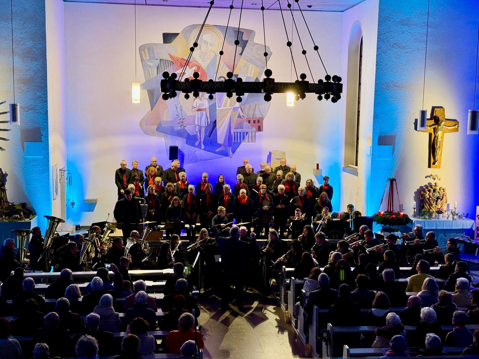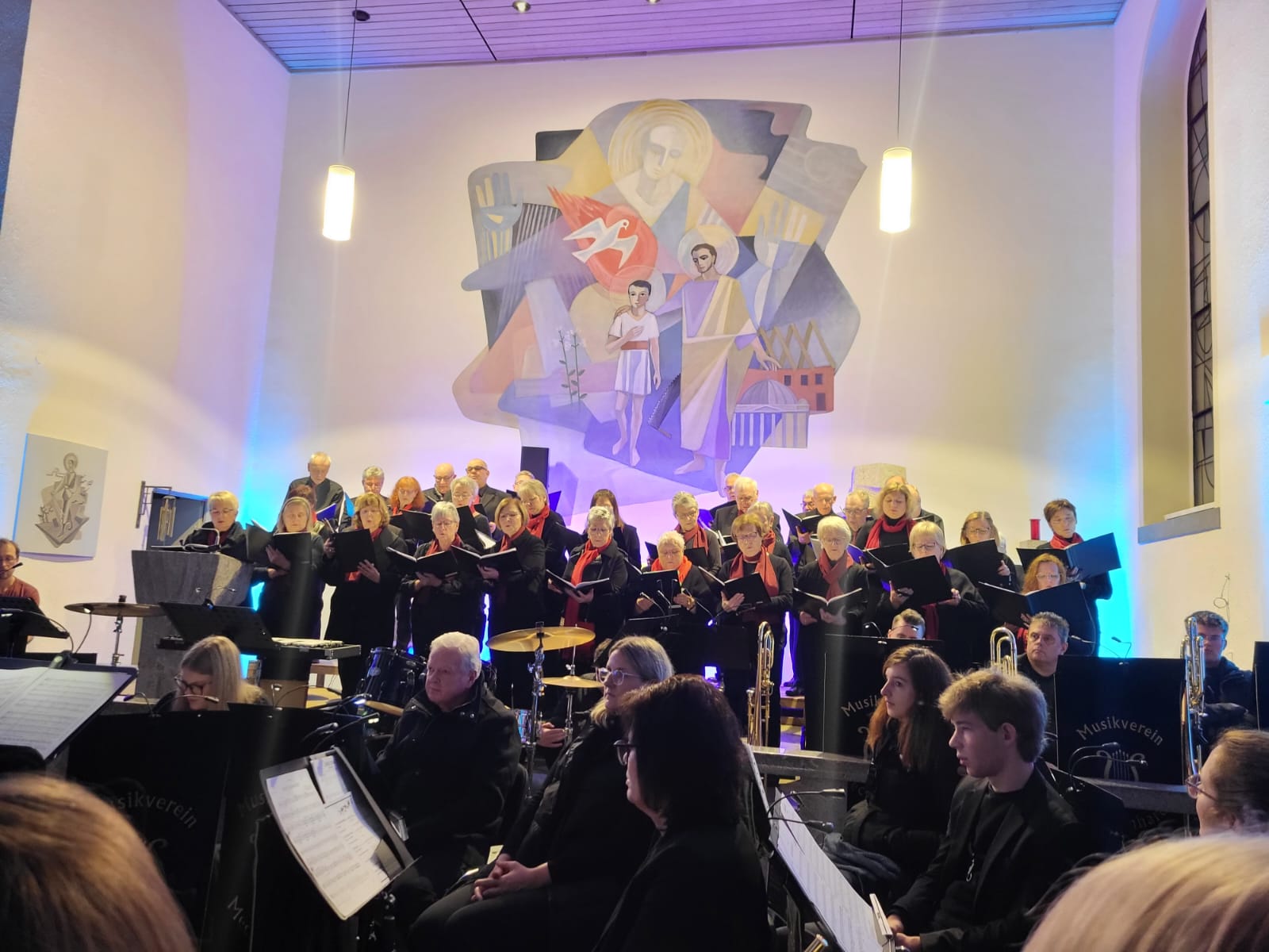 Traditionell sangen wir auch dieses Jahr wieder beim Mechenharder Weihnachtskonzert mit. Diesmal war es ein ganz besonderes Konzert, das letzte des Dirigenten des Mechenharder Blasorchesters, Marcus Greim.